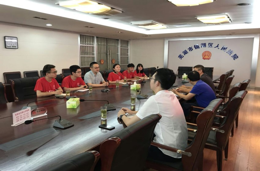 7月24日,团队成员在指导老师陆在春的带领下前往镜湖区人民法院进行调研。队员与法院工作人员探讨立案登记制对法院工作体量的影响,总结经验和成果,发现问题并进行讨论。7月27日,陆在春老师带领队员再次前往镜湖区人民法院,同业务庭的四位法官进行二次座谈,深度探讨立案登记制在实际业务中带来的改变。