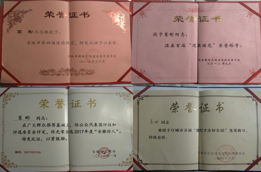 大家观看了由葛老亲手用毛笔写就的查济村法制宣传栏墙报,学习葛老近二十年坚持不懈的义务普法经验,并对在新时代如何开展农村基层普法、推进普法长效机制的建设,交流了经验。在访谈过程中,我们了解到:葛彬老人十余年来,坚持自学法律知识,收集法律资料,用一张方桌、一支毛笔、一个放大镜、一本新华字典,自编法制宣传墙报215期,风雨无阻,宣传法律,调解纠纷,为促进和谐乡村的建设,做出了很多贡献。通过十年如一日的义务普法,让广大村民耳濡目染地接受法律知识,提高村民的素质,得到乡亲们的广泛赞誉。葛彬老人作为默默耕耘的乡村普法人,主张为百姓排忧解难,其十年如一日的义务普法事迹得到省市媒体的广泛关注与宣传,先后获得“全国普法教育模范”以及“中国好人”等光荣称号,这是对葛彬老人的肯定。