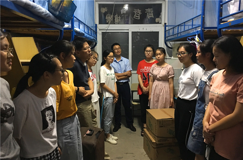 晚上,院领导一席人又深入2016级、2017级卓越司法班实习学生寝室,进行交流和慰问。院领导们详细询问了同学们在实习和生活上的困难,以及实习进展和心得体会,为同学们发放了慰问品。最后,院领导对实习同学在实习单位的表现给予肯定,希望实习同学坚定信心,保持恒心,学会用心,提醒暑期在校实习要照顾好自己、互相帮助,同时要提高安全意识,确保人身和财产安全,以良好的状态在学校度过一个充实而欢乐的暑假生活。