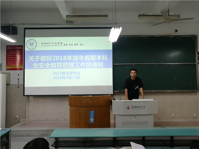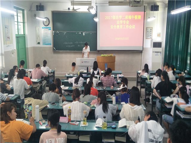 为做好放假期间本科生的安全教育管理工作,端午前夕,2017级法学专业各班于安全委员和班委的组织下在行知楼,召开了端午节安全教育工作班会,各班全体同学参加班会。