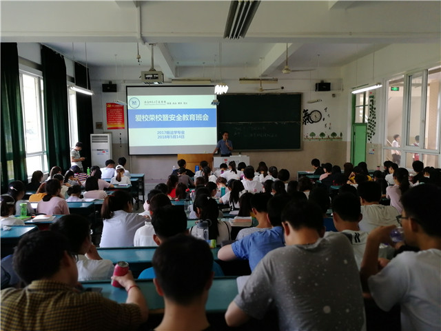 值师大90周年校庆来临之际,为营造良好的文化氛围,增强学生爱校荣校意识,同时对bet36365官网学生进行安全健康教育,bet36365路检测中心2017级法学专业班级于 5月14日下午在行知楼2020104教室举行了爱校荣校暨安全教育主题班会,会议由辅导员陈星宇老师主持,法学一班及法学二班全体同学参加本次班会。