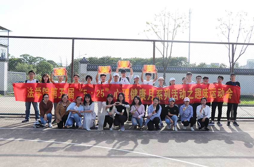 此次趣味运动会共有四项,分别是:抱团游戏、传呼啦圈、跑步接力和拔河。赛前主持人简单地向大家介绍了各个项目的规则。运动会正式开始后,现场的气氛瞬间被调动起来。无论是抱团游戏的斗智斗勇,传呼啦圈的灵活迅速,还是跑步接力的默契配合,每个班级同学都不甘落后,纷纷使出浑身解数。在最后进行的拔河比赛中,参赛同学们咬紧牙关,抓紧绳子,团结一致,比赛双方展开了激烈的较量。场外观众为比赛选手们呐喊助威,参赛队伍之间也相互鼓励,充分贯彻了“友谊第一,比赛第二”的精神,现场欢笑连连,参赛者与观赛者都沉浸在比赛的乐趣之中。经过紧张激烈的角逐,最终,2016级法学二班夺得一等奖,2016级卓越司法班和2017级法学专业取得二等奖,2016级法学一班和2017级行政管理专业为三等奖。在颁奖活动结束后,各班同学一起合影留念。