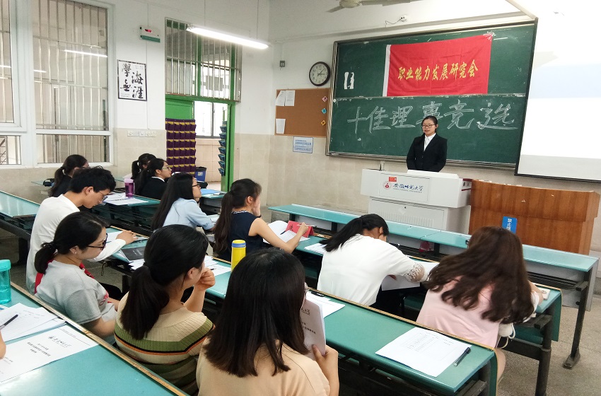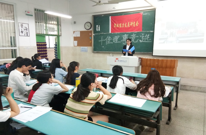 为进一步加强社团理事队伍建设,选拔一批责任心强、团队意识高、具有优秀组织能力的社团理事,5月30日下午,职研会于行知楼2010304教室举办社团“十佳理事”汇报评选活动。