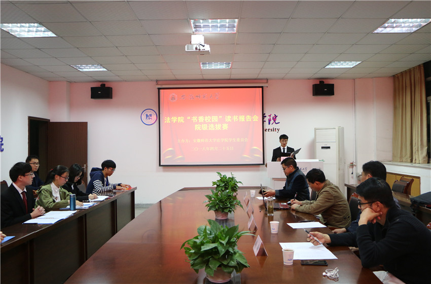 为引导广大青年学生养成“爱读书、会读书、读好书”的良好习惯,4月25日晚,bet36365路检测中心于院行政楼四楼会议室举办了“书香校园”读书报告会院级选拔赛。法学专业老师李路根、高永周、韩瀚以及行政管理专业老师王焕炎受邀出席本次比赛并担任评委。