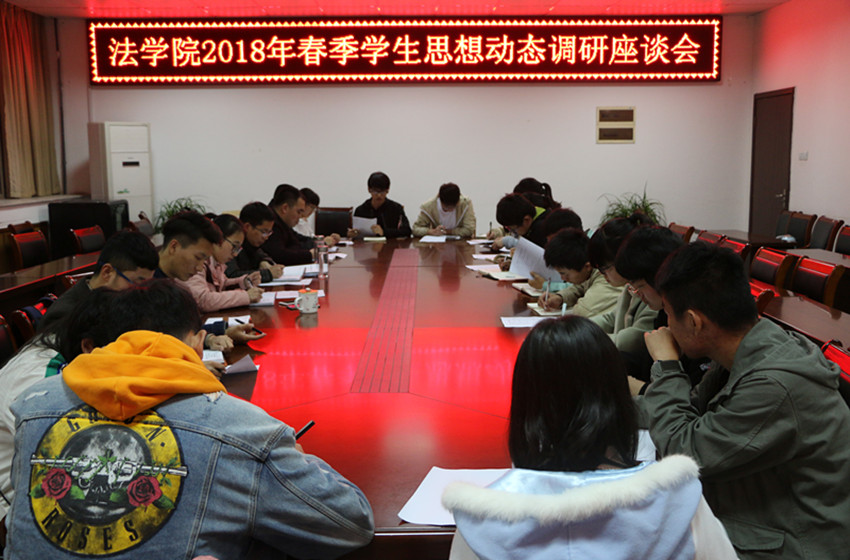 为了解新学期学院学生的思想动态,研究解决学生在思想、学习和生活方面存在的实际突出问题,3月23日晚七点,bet36365官网于行政楼四楼会议室召开2017-2018学年春季学期本科生思想情况调研座谈会。院党委副书记屈光峰、团委副书记陈兴宇、16法学辅导员储梦凡受邀出席,16、17级本科生学生代表共同参会。会议由陈兴宇主持。