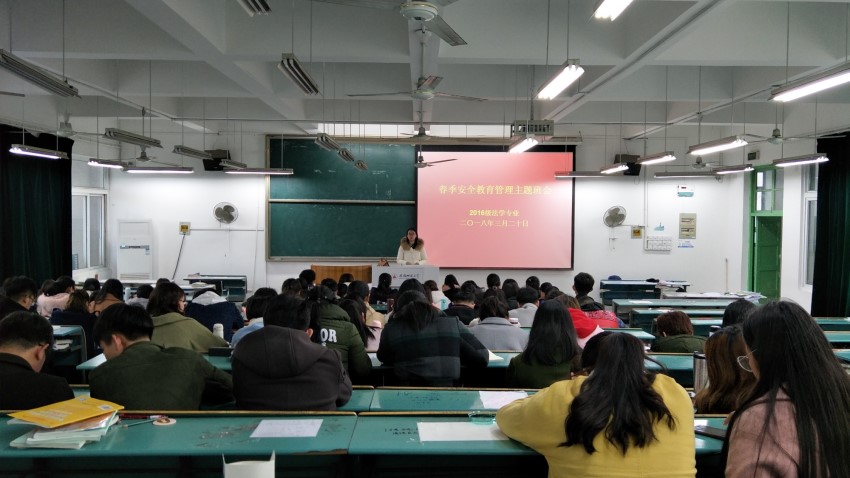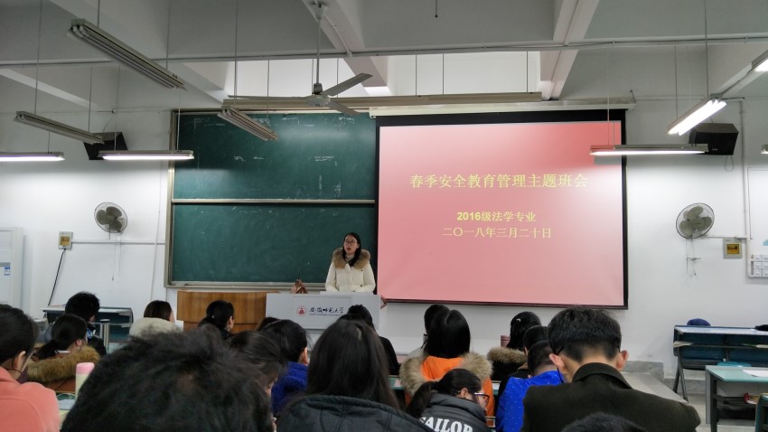 3月20日,16级法学专业分别于行知楼2070301和2020304教室召开春季安全教育管理主题班会。会议由16级法学专业辅导员储梦凡主持,16级法学专业全体同学参加。
