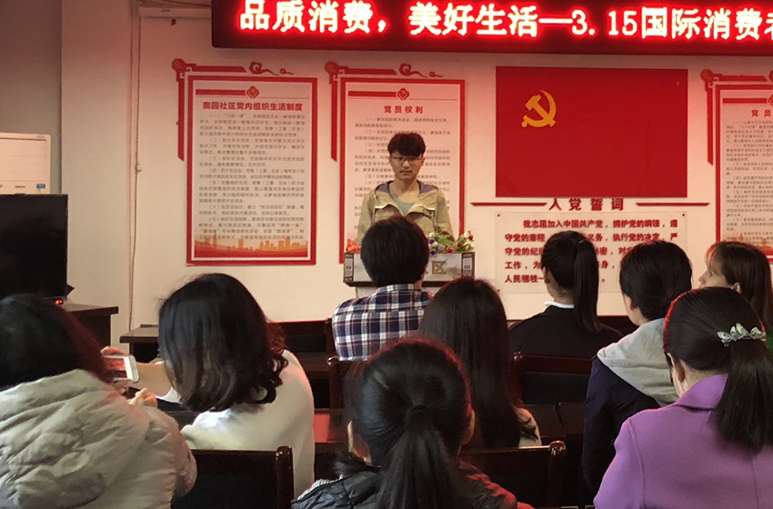 活动伊始,宣讲员秦修军代表团队在居民委员会会议室发言,简要介绍了国际消费者权益日的相关内容后,队员们以两两一组的形式在社区范围内进行普法宣讲并派发相关宣传单。本次宣讲以易懂、实用为原则,宣讲内容以介绍消费者的九项基本权利为主,着重强调了消费者在其合法权益受到侵害时通常可采取的五项维权途径。在宣讲员介绍了消费者维权可选择的协商、调解、申诉、仲裁或者诉讼等途径后,很多居民表示在宣讲中学到的这些法律知识在生活中是很实用的。