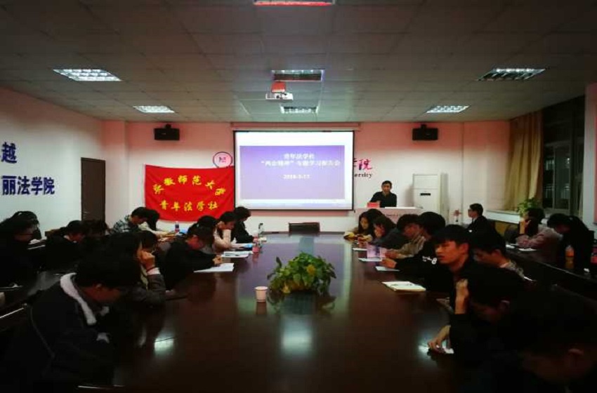 会议伊始,李路根老师和我社全体成员一齐观看了有关两会的材料,并指出其中有关扩大法律援助范围、坚决查处和纠正违法违规行为及完善公共法律服务体系、落实普法责任制等内容都十分符合当代法治社会的发展方向。此外,李路根老师为大家播放了有关宪法修正案的资料并加以解说。此宪法修正案包含内容广泛,紧跟时代发展潮流,符合中国当前的国情,体现了广大人民对中国未来的思考。会议最后,青法社全体成员拍照合影留念,结束了此次学习活动。