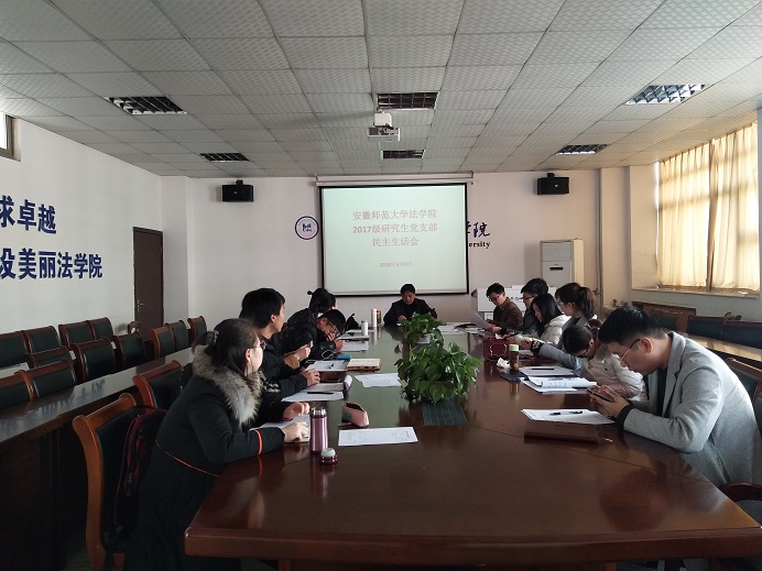 会上,胡书记首先带领大家简要学习了校组织部《关于组织召开2017年度组织生活会和开展民主评议党员的通知》, 明确了会议主题和任务。之后,全体党员同志在胡书记的带领下认真研究学习了习近平新时代中国特色社会主义思想之“八个明确”和“十四个坚持”相关内容。随后,胡书记向全体党员进行2107年度工作述职以及党支部支委会成员向大家进行了批评与自我批评。接下来,每一位党员总结了自己在2017年度的工作学习情况,并开展了批评与自我批评,胡书记对大家的总结都做出了点评并对大家分析党支部存在的一些问题进行了总结,如:党支部活动的形式单一化,党支部活动应更加公开化等问题。最后在胡书记引导下,大家就党支部建设存有的不足展开讨论,提出解决问题的建议和方法等。