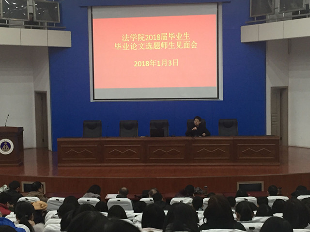 2018年1月3日下午2点,2014级法学毕业生毕业论文选题导师见面会在敬文报告厅举行,会议由bet36365路检测中心副院长严宏主持,全体毕业论文导师以及14级法学专业全体学生参加。