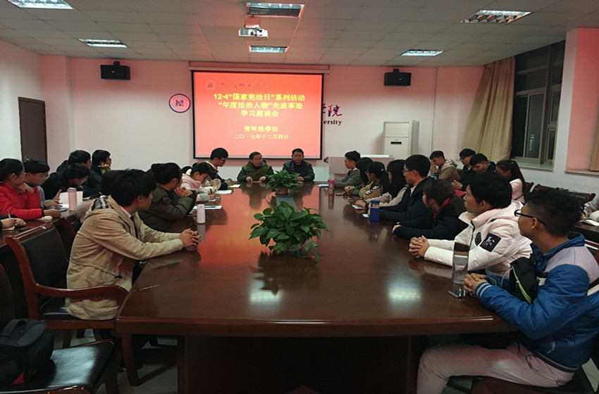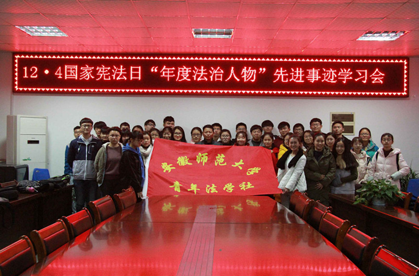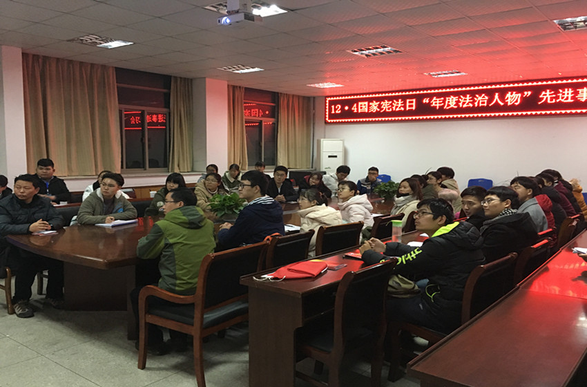 2017年12月4日是国家第四个宪法日,为响应国家号召,bet36365路检测中心青年法学社于12月4日晚在行政楼四楼会议室举行12·4“国家宪法日”暨青年法学社“年度法治人物”先进事迹学习座谈会。出席本次会议的嘉宾有bet36365路检测中心党委副书记屈光峰、社团指导老师李路根、会长团、各部门部长及理事们。
