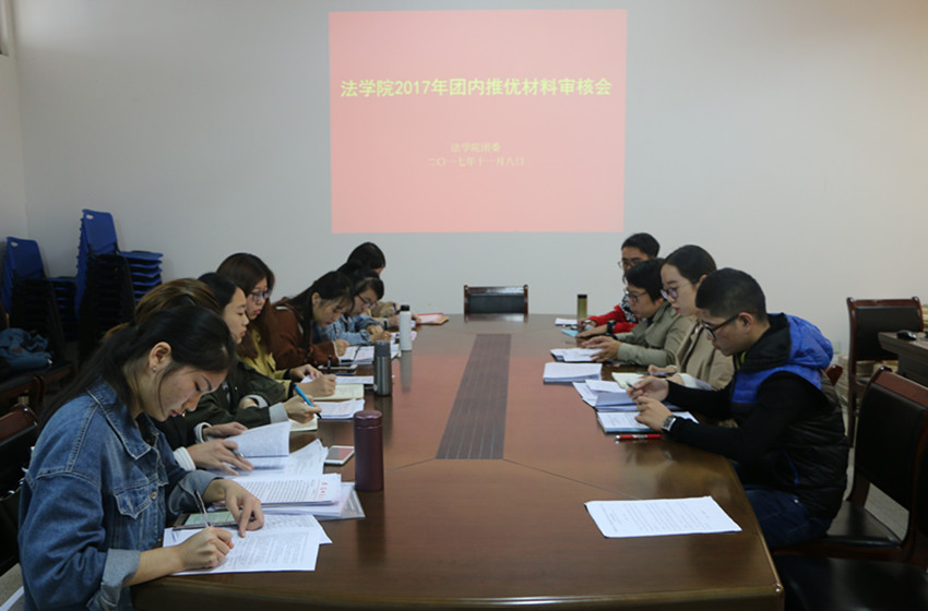 11月8日下午,bet36365路检测中心在行政楼三楼学生会办公室召开了学院2017年团内推优材料审核会,院团委书记王虹圆受邀出席,院团委学生副书记刘闯、院团委组织部全体成员以及15、16级各班级团支书参加会议。
