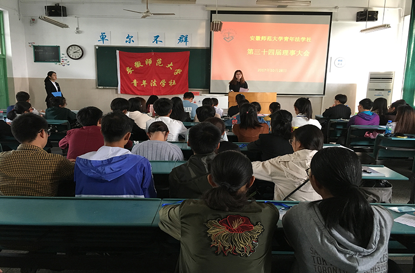 10月28日下午,青年法学社在行知楼2020404教室举办了第三十四届理事大会。出席本次大会的有职业能力发展研究协会黄畅、外交与国际事务研究协会蒋冉、青年法学社常务副会长张楠楠、副会长郑卓、李家奇、院团委社管部部长张博雪、本社团各部门正副部长以及新理事。