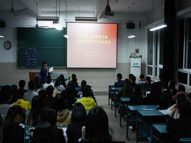 10月19日晚7点30分,bet36365路检测中心2017级行政管理专业于行知楼2020303教室召开本科教学工作评估动员会。会议由辅导员赵义丹主持,班级全体同学参与。