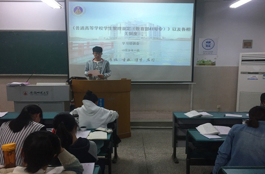 根据校文件《< 普通高等学校学生管理规定>(教育部41号令)bet36365路检测中心实施办法》的指示精神,15法学、16行管专业辅导员桂彬老师分别于10月19日、20日组织所管理的三个班级集体学习该文件。