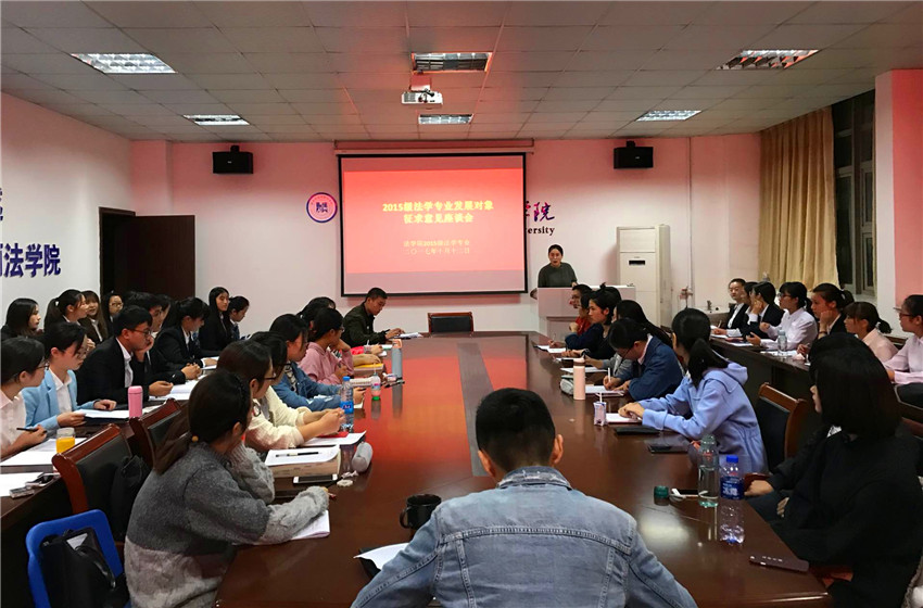 10月12日晚上,15法学专业党员发展对象征求意见座谈会在行政楼四楼会议室成功召开。15法学专业辅导员桂彬出席,团支部书记葛琪琪主持,34位拟发展对象以及部分班委、团小组长代表、群众代表参加。