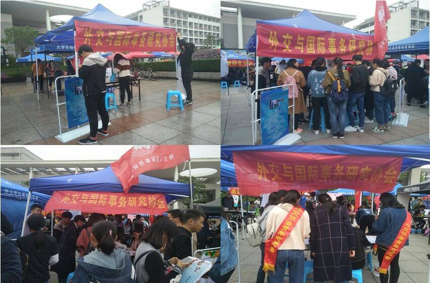 为普及外交与国际知识,推广模拟联合国活动,扩大当代大学生的国际视野,外交与国际事务研究协会于10月14日和15日在花津校区西门前广场开展2017年社团招新活动。会长孙瑞,各部门部长、副部长紧密合作,促进招新工作圆满成功。