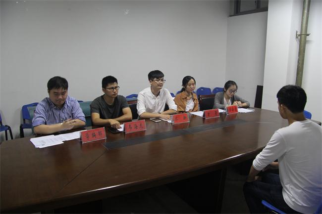为了给2017级研究生新生提供一个展现与提升自我的平台,同时也为了给研究生会储备优秀的人才,确保研会工作顺利开展,bet36365路检测中心研究生会于2017年9月25日晚在院行政楼五楼法律教研室与公管教研室开展第六届研究生会招新面试工作。研究生会主席路冬带领新一届研会主席团与各部门主要负责人担任此次招新面试工作的评委。