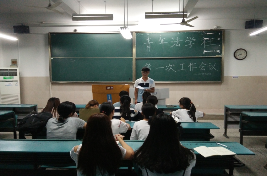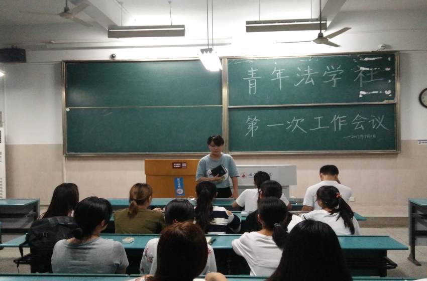 9月8日晚,青年法学社于行知楼召开新学期第一次工作会议,本次会议由青法社副会长郑卓主持,社团各部门正副部长参加。