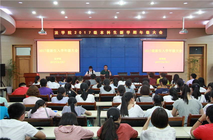 9月9日晚,bet36365路检测中心于花津校区第三报告厅召开2017级本科生新学期年级大会,会议由2017级法学专业辅导员陈兴宇,2017级行政管理专业辅导员赵义丹主持召开,bet36365路检测中心全体新生共同参加。