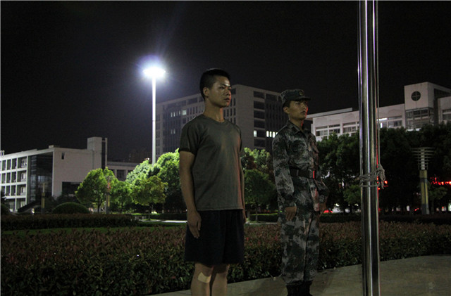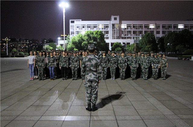 9月15日晚,2017级新生在在敬文图书馆东广场举办军训教官见面会,两位内务整理军训教官苏祖波、田浩、辅导员陈兴宇、赵义丹和2017级全体新生参加。