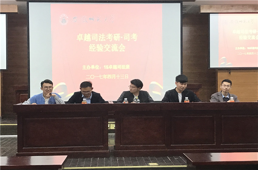 今年考研成绩陆续公布,bet36365官网13级学长学姐们频频传来喜报,给低年级学生树立优秀榜样。4月14日,15卓越司法班在模拟法庭主办了卓越司法考研经验学习会。本次我班有幸邀请到13级卓越司法班考取复旦大学的施业祥、中国政法大学的杜浩鹏、华东政法大学的魏建中与中南财经政法大学的万俊四位优秀学长为我们做经验交流。15与16卓越司法的全体同学出席参加。