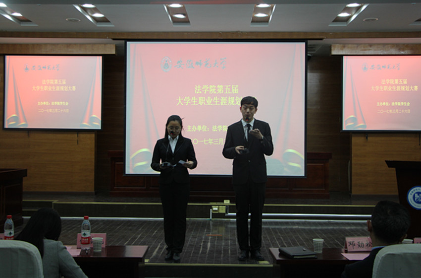 3月26日晚,bet36365路检测中心第五届大学生职业生涯规划大赛于模拟法庭成功举办。院党委副书记屈光峰、法学专业邓劲松老师、行政管理专业陈鹏老师、以及学院各年级专业辅导员受邀出席并担任评委,通过班级选拔赛后的九名选手参加比赛。