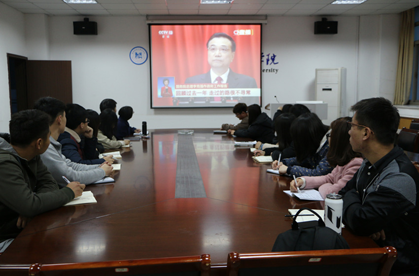 座谈会开始,孙介楣首先阐述了作为新时期法科生,关注国家政治生活、了解国家方针政策的重要意义,并由团委宣传部副部长徐晨焜介绍了本次两会的重大议题及各方面情况。随后,大家集体观看2017年政府工作报告视频,观看完毕后团委成员积极讨论,踊跃发言,对政府工作报告中关于“三去一降一补”、“民法总则(草案)”、司法体制改革、脱贫攻坚、大学生就业等时政和与专业相关的热点问题发表观点和看法。最后,徐晨焜进行总结,他说到大家学习“两会”就是为了了解国情、把握时代脉搏,同时号召团委全体成员积极发挥团干带头作用,引导全院学生积极学习两会精神、营造良好学习氛围。