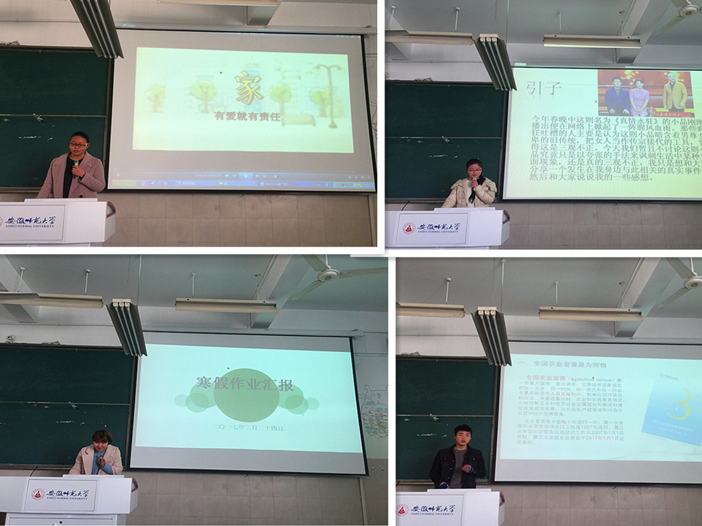 2月24日上午九点,15级行政管理专业在行知楼2020303教室举行寒假作业汇报会,此次汇报会由黄威同学主持,全体行管同学参与。
