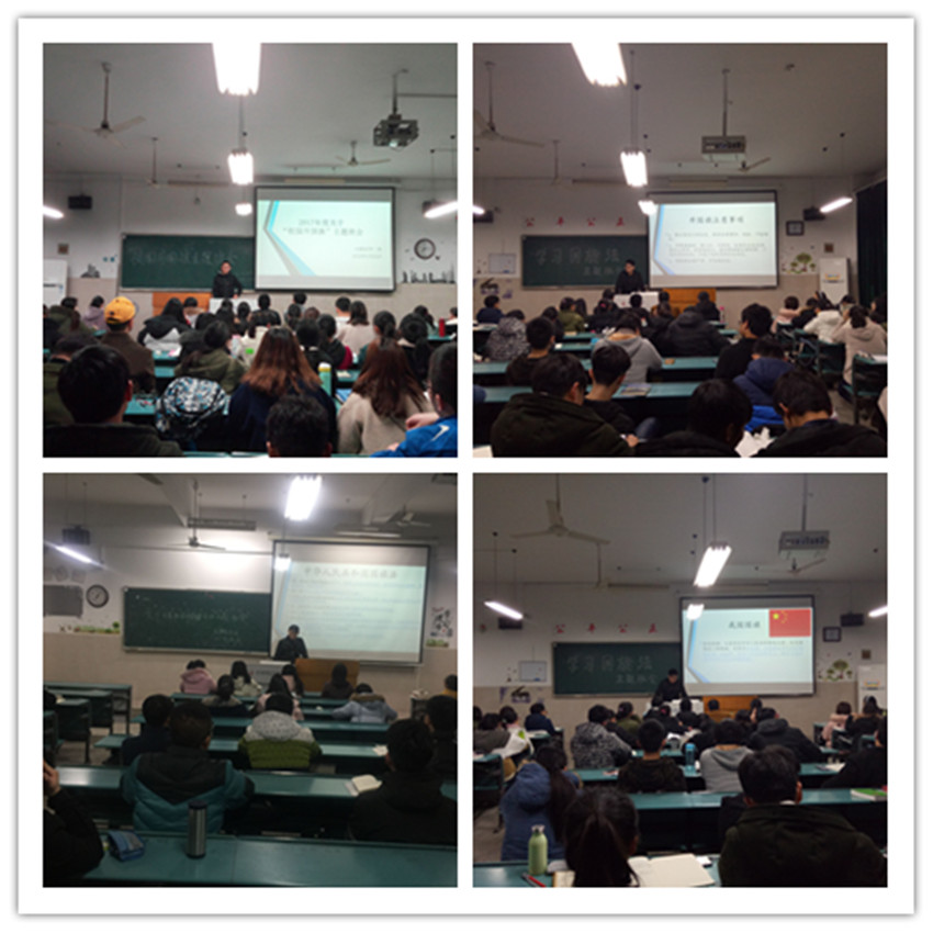 为认真贯彻落实《中华人民共和国国防教育法》、《中华人民共和国国旗法》,培养学生国防意识,激发广大学生爱国热情,进而引导学生自觉践行社会主义核心价值观,2016级法学专业全体学生积极响应学校号召,在2017年2月23日晚分别于2020404、2020504、2020505教室开展了学习《中华人民共和国国旗法》的主题班会。此外,全体学生在2017年2月27日7:00于敬文图书馆广场积极参加了校园升国旗活动。