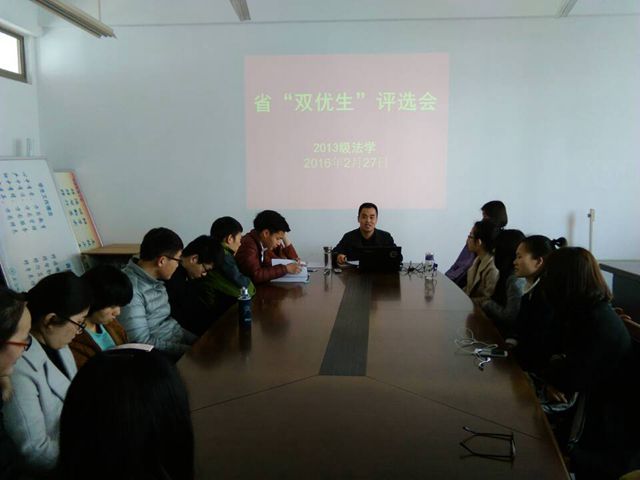 2月27日下午在bet36365路检测中心学生会办公室,13法学召开安徽省“双优生”评选会与考研复试、求职指导会,会议由13法学辅导员陈兴宇老师主持,洪祖强、周康宇等二十余名同学参会。