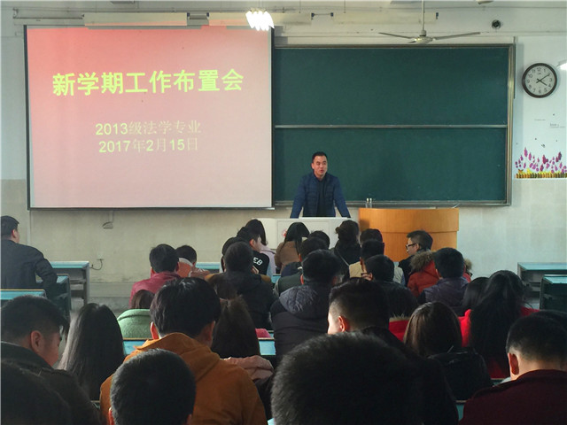 2月15日下午4点,2013级法学专业在教室2010304召开新学期工作布置班会。本次班会由13法学辅导员陈兴宇主持,13法学全体同学到场聆听。