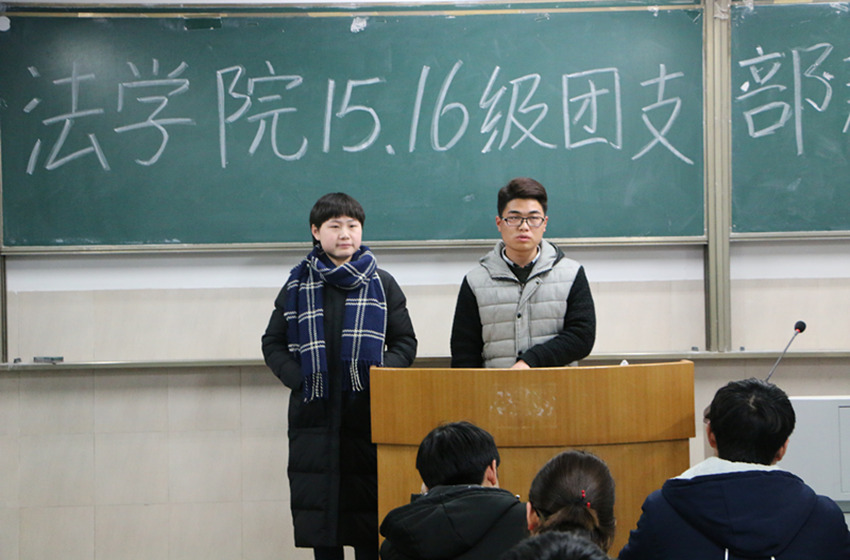 会议伊始,邹传奇进行上学期的工作总结,指出班级团支部在上学期的工作中存在布置的工作与上交的工作有偏差、上交的文件格式字体及其它方面不符合要求和上交材料的时间拖延三大问题,希望各班级团支部成员能够增强团员身份意识,努力做好工作,为班级同学树立榜样。吴佳佳则对新学期的系列工作进行安排,就三会两制一课、雷锋月系列活动、律政菁英以及魅力团支书等活动进行了详细地介绍,侧重解释了三会两制一课的要求,期待各班级能够将三会两制一课活动落于实践,并强调团支部成员在工作时要注重进行班级同学的思想建设。
