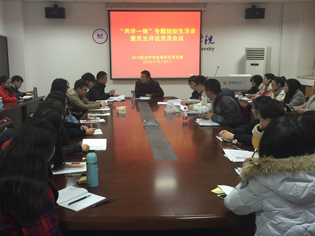 12月27日下午两点,2013级法学专业本科生党支部在学院四楼会议室召开“两学一做”专题组织生活会暨民主评议党员会议。院党委委员周俊强对本次会议进行指导。支部全体成员参加了会议,会议由支部书记陈兴宇主持。