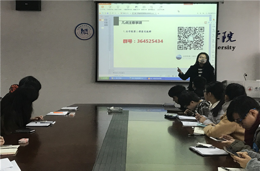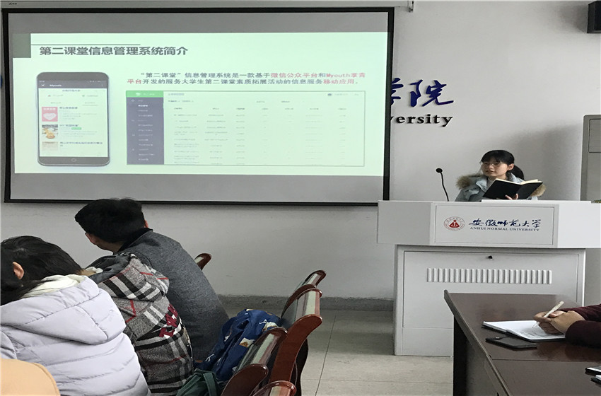 胡佳首先介绍了第一课堂、第二课堂与第三课堂的区别,说明了开通第二课堂信息管理系统的意义,并从“第二课堂信息管理系统简介”、 “为什么要使用第二课堂信息管理系统”、“如何操作第二课堂信息管理系统”、“几个注意事项”等四个方面展开,详细讲解了信息管理系统的使用方法与注意事项。她尤其强调了社团班级各单位报名信息一定要确认无误,审核后立即发布以及课程申报设置等问题,希望各单位学分认证负责人能够注意。会后,胡佳为各位同学耐心解答信息管理系统出现的操作问题。左丽丽补充说明了第二课堂学分认证的要求,指出了素质拓展活动规范化的积极意义,希望各学分负责人能够更加认真的对待学分认证工作。