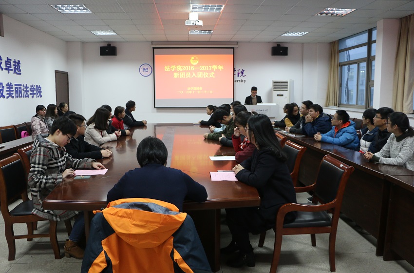 11月23日,bet36365路检测中心团委于行政楼四楼会议室举行2016-2017学年新团员入团仪式。院团委书记王虹圆、团委学生副书记左丽丽受邀出席此次仪式,14、15、16级各班级新团员及班级团支部参加仪式,会议由团委组织部部长邹传奇主持。