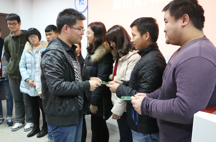 仪式伊始,邹传奇对新团员的加入表示热烈欢迎,并介绍了开展入团仪式的重要意义,仪式在庄严的国歌中正式开始。左丽丽宣读新团员名单,随后在邹传奇的组织下,各班级团支书为新团员颁发团员证和团徽,各位新团员走向前去庄重地从自己班级团支书手中接过团徽和团员证。在交接过程中,新团员庄严肃静,对他们而言,团徽与团员证不仅仅只是物品,更是作为共青团员担负重任的一种标志,是一种光荣与责任。在组织部副部长吴佳佳的带领下,新团员紧紧拿着手中的团员证进行宣誓。通过宣誓,新团员向团组织表明了自己的决心,牢记了团的誓言,激发了自己作为一名共青团员的光荣感和责任感,增强了为共产主义奋斗的信念。新团员代表杨路路发言表达了新团员对举行此次仪式的期待,说出自己的所感所悟,并表示今后将在学习与生活中严格要求自己以履行团员的职责。
