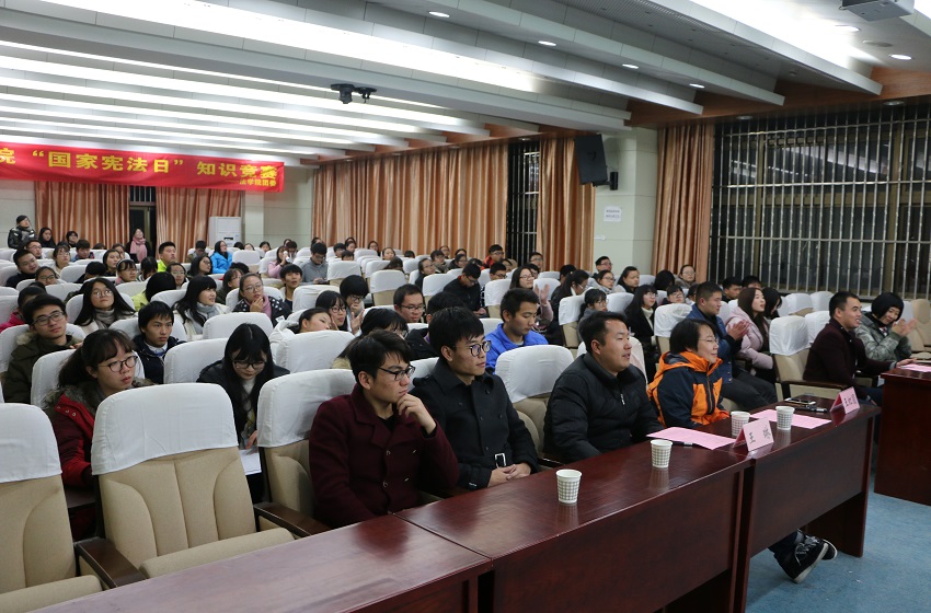 本次国家宪法日知识竞赛活动在迎接“12.4”国家宪法日的背景下,宣传弘扬了宪法精神,增强了学院学生对宪法的认识,进一步提高了广大师生的法律意识和法治观念,促进全院学生关注时事政治,进一步贯彻学习党的十八届六中全会精神要领。(文/图 团委宣传部 王孟德)