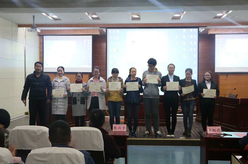 本次知识竞赛活动共分3个环节,紧紧围绕宪法知识,分为必答题,抢答题和风险题,在主持人详细介绍比赛规则后,紧张激烈的比赛就正式拉开了帷幕。在必答题环节,队员们沉着冷静,一次次展现了自己的智慧。而在最激烈的抢答题环节,比赛队员们不仅比拼着手速,更向老师和观众们展现了过人的思维能力。这一环节中,15级卓越司法班和青年法学社凭借较强的综合实力一举脱颖而出,迅速拉开差距。最后一轮比赛中,得分领先的六支队伍展开了激烈角逐。队员们一方面仔细斟酌各题分数进行选择答题,另一方面迅速的进行集体讨论寻求正确答案。这其中参赛队员们的答题也多次赢得在场老师和观众的掌声、笑声。经过最终比拼,15卓越司法班荣获一等奖,青法社与外交协会分别获得二等奖,其他参赛队伍分别获得三等奖与优秀奖。评委老师为获奖的参赛队伍颁发奖品并合影留念。