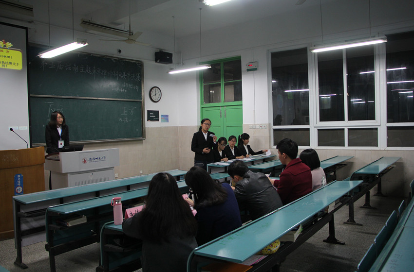 11月14日晚7点,第五届法制主题未来律师辩论赛半决赛在行知楼2020104教室顺利进行。本次辩论赛由指导老师李路根、16级行管专业辅导员储梦凡担任此次辩论赛的评委,李秋言同学主持辩论赛。