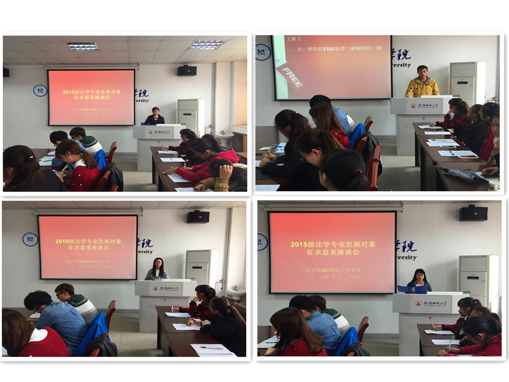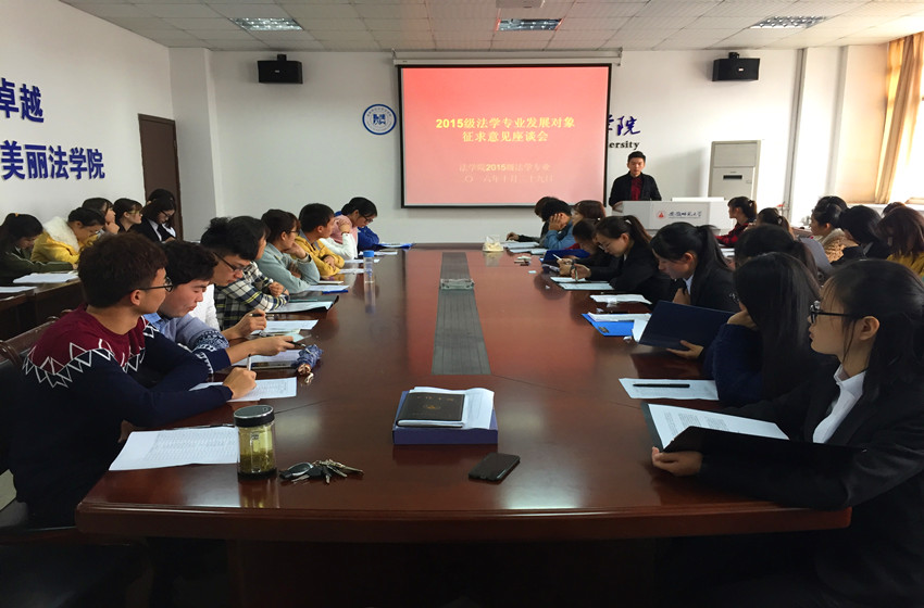 10月29日中午,2015级法学专业党员发展对象征求意见座谈会于行政楼四楼会议室成功召开。15级法学专业辅导员桂彬担任会议主持人,24位党员候选人、各班寝室长、团小组组长以及学生代表到场参与此次会议。