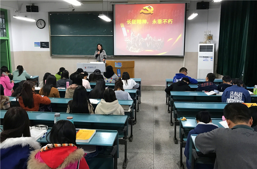影片观赏期间,所有同学安静严肃,没有嬉笑,没有喝倒彩。影片放映结束后,全场响起热烈的掌声。在交流观影感悟时,各个同学都有感悟。周玉萍同学说道:“长征是中华民族不屈不挠精神的典范,我们不仅要铭记于心,更要外化于行,以实际行动践行长征精神。”而章许睿同学十分赞同要“以实际行动践行长征精神”,更表示“在经济快速发展的当下,我们作为共青团员的青年大学生,更应该自觉学习长征精神,认同党对中华民族作出的卓越贡献,打心底认同党、热爱党。”