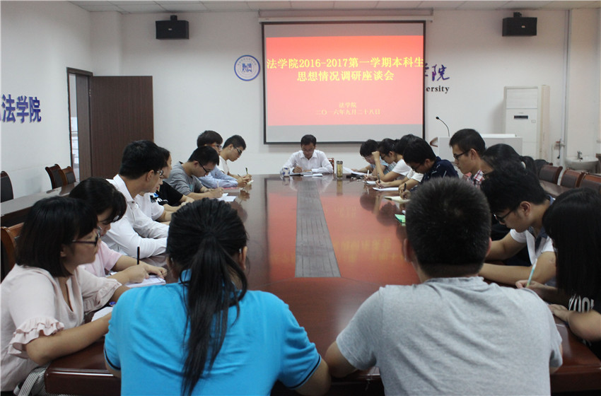 9月28日下午,学院在行政楼四楼会议室召开了2016-2017学年第一学期本科生思想情况调研座谈会。院党委副书记屈光峰、院团委书记王虹圆以及13-15级各班级代表参加会议。会议由屈光峰主持。