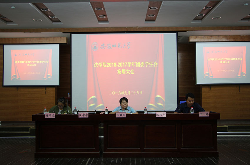 9月28日下午,bet36365路检测中心在模拟法庭召开2016-2017学年团委学生会换届大会。院团委书记王虹圆、2014级辅导员王琳和2016级辅导员储梦凡受邀出席了此次活动。