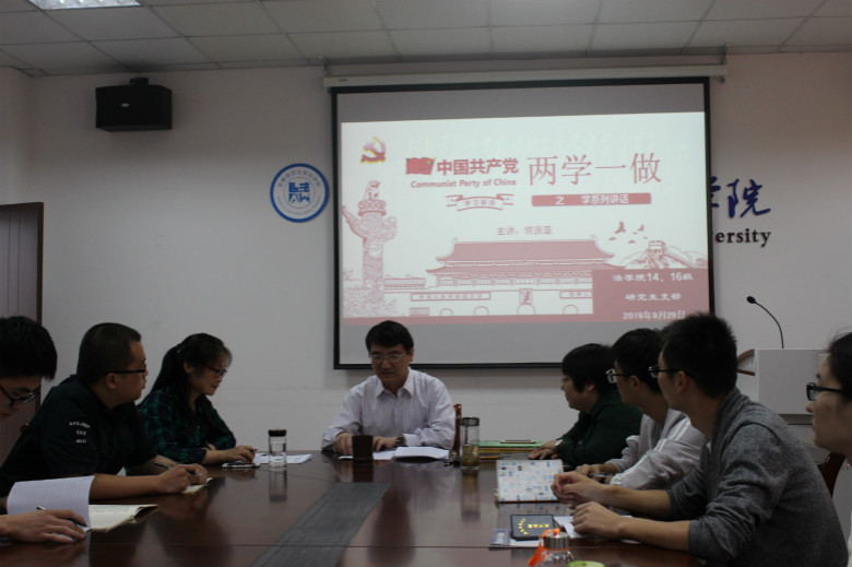 9月22日下午,2014级、2016级研究生党支部在学院四楼会议室开展习近平系列讲话学习党课活动。活动由王虹圆老师主持,何源章老师主讲,2014级、2016级研究生支部全体党员参加此次活动。