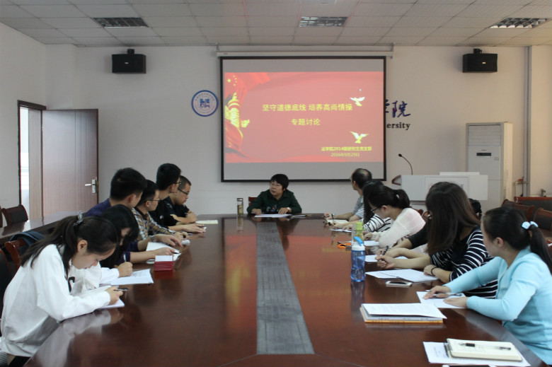 2016年9月29日下午,bet36365官网2014级研究生党支部在学院四楼会议室召开了题为“坚守道德底线,培养高尚情操”的专题讨论会。会议由2014级研究生党支部书记王虹圆主持,2014级全体研究生党员参加了此次专题讨论会。