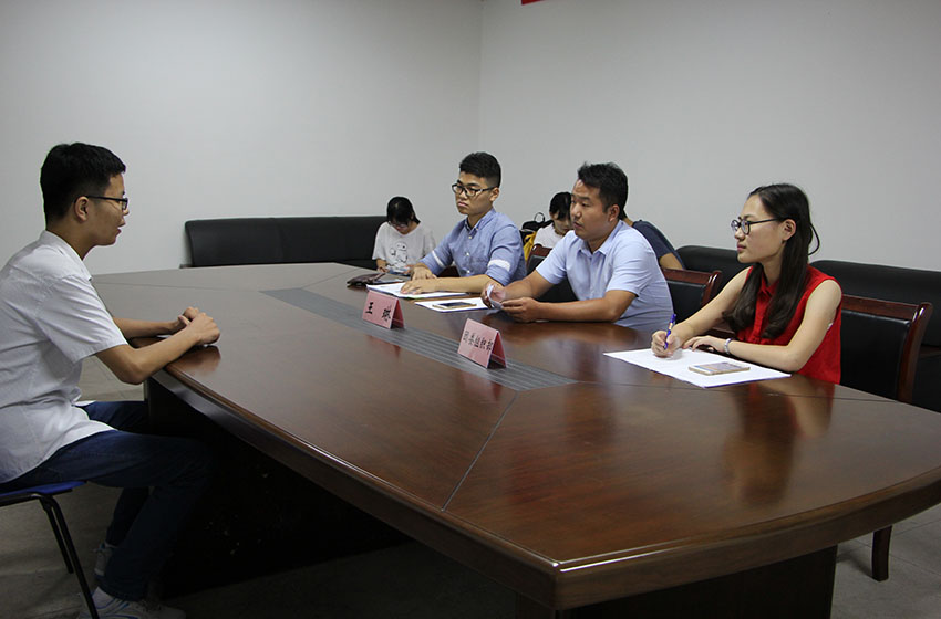 此次面试与第一轮面试形式相同,包括自我介绍和面试官提问两个环节。但是相较之前,经过了前两轮笔试和面试筛选出来的新生表现得更加从容淡定。无论是自我介绍时的落落大方,还是面对提问的沉着冷静,无一不向面试官们展示了极佳的风采。而那些逻辑清晰慷慨激昂的回答,更是让老师部长们深切感受到了16级新生们饱满的自信。