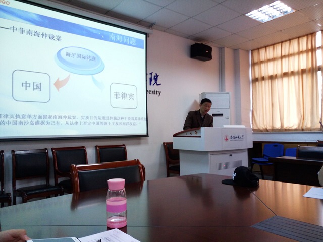 第三项,外交协会指导老师李路根就《“一带一路”下南海争端的国际法问题》做报告,并对外交协会的读书研讨活动进行专门指导。李路根深入解读“一带一路”倡议的精神,阐述中国外交的转型发展新形势,指出“一带一路”带动中国与沿线国家的政治、经济、文化领域的多方面交流、发展。21世纪是海洋世纪,“21世纪海上丝绸之路”的发展需要和平的海洋环境。李路根报告中讲述了南海问题产生的背景,分析了南海有关领土主权争端的国际法及国际争端解决机制,指出需要正确解读《联合国海洋法公约》精神,防止误读,应当强化海洋意识与国际法意识。