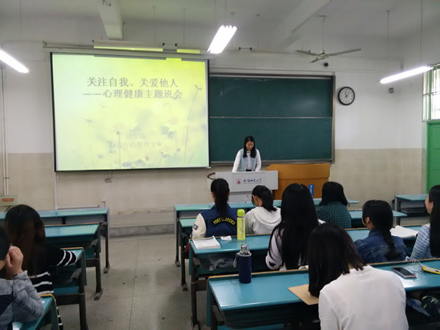 5月16日11点整,14级行政管理专业全体同学在2010304教室开展了“关注自我,关爱他人”的心理健康主题班会。本次班会由班长刘栋华主持。