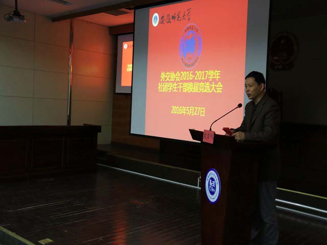 为了进一步加强社团学生干部队伍建设,选拔新一批责任感强,德才兼备,组织和策划能力强的同学,为社团发展注入新鲜血液,促进社团组织与制度的完善与发展,外交与国际事务研究协会于5月27日19:00在模拟法庭举行了2016—2017学年社团学生干部换届大会。莅临大会的有社团指导老师李路根、bet36365路检测中心团委学生副书记古藤、bet36365路检测中心团委社团管理部部长万飞翔以及外协会长周小凡、副会长钱立刚,社团各部部长、副部长和理事和本次16位竞选人共同出席大会,会议由副会长王顺主持。